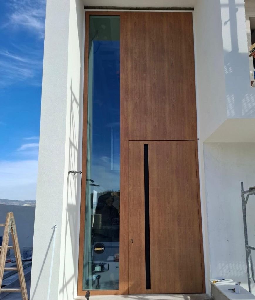 Instalación de carpintería de aluminio y puerta pivotante en vivienda moderna (Granada)