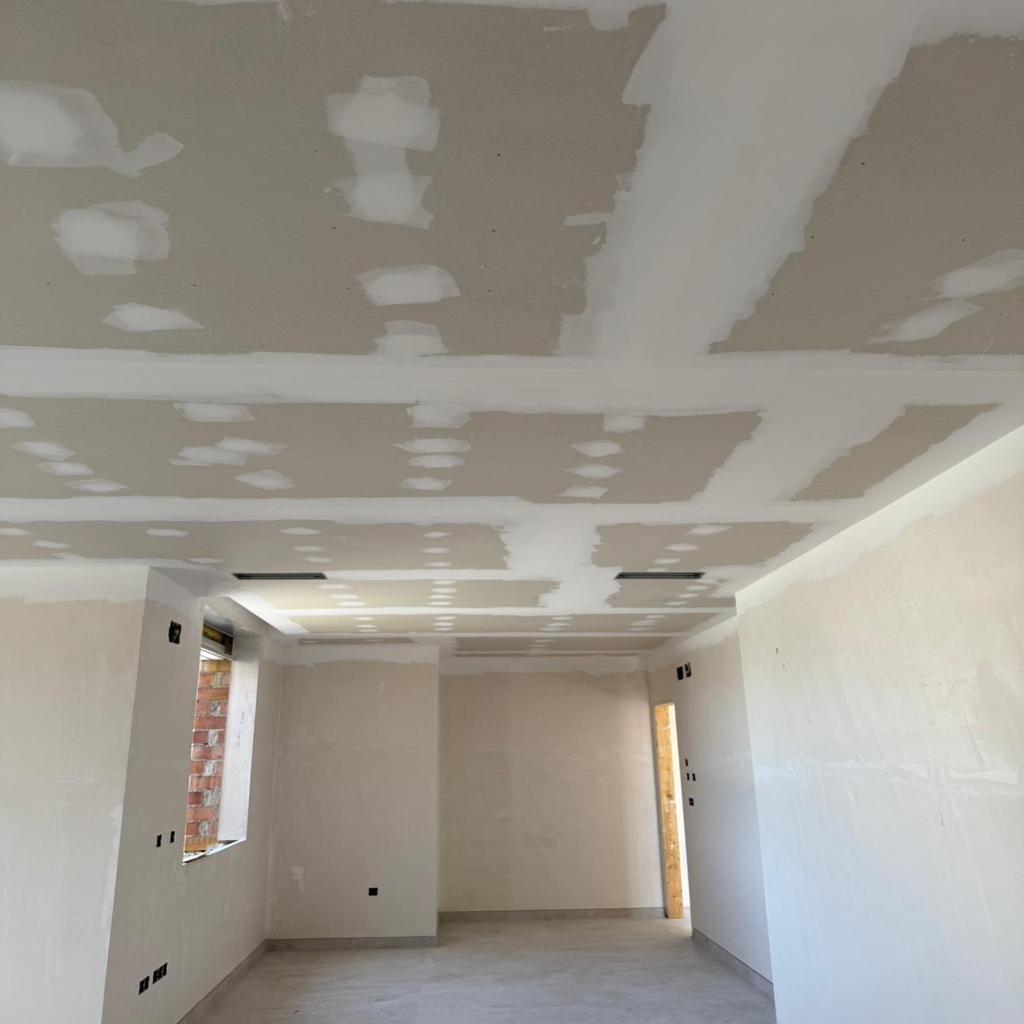 En esta vivienda unifamiliar situada en Granada, se realizó el revestimiento completo de techos con soluciones de yeso laminado, combinando funcionalidad, diseño limpio y preparación para sistemas de iluminación indirecta.